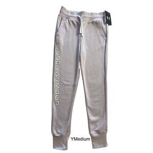 UNDER ARMOUR GIRLS YMED Armour Rival Fleece Joggers - Cool Pink and white Trim