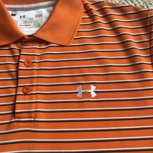 UNDER ARMOUR Polo Shirt Loose Heat Gear Large Mens Orange Short Sleeve