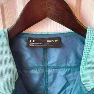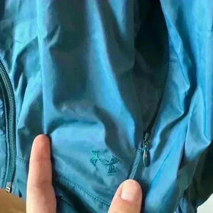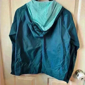 UNDERARMOUR women’s light weight raincoat, size small, two tone blue, with pockets