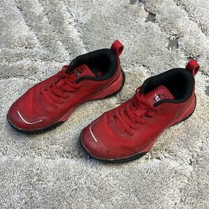 In great condition. My son loved these because they are so easy to slip on. These can still be worn for a long time.