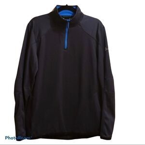 Grey with blue accents. Mild wear. 3/4 zip Coldgear Reactor pullover.