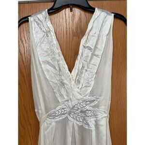 UNDERCOVER WEAR Ivory Nylon Lingerie Nightgown M Medium Lace Inset Vintage