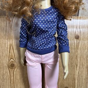 this is a pre owned item. Doll and clothes are in good condition but part of the chest of the doll is so dented please see photos