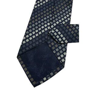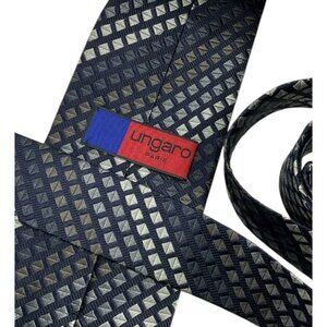 UNGARO Men's 100% Silk Necktie LUXURY Tie Navy Gray Brown Geometric W:3.7" EUC