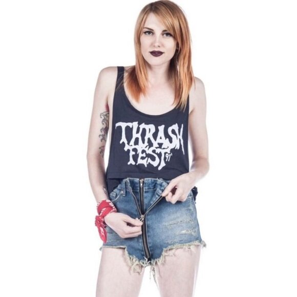 UNIF Double Zip Front Distressed Jeans Shorts High Waisted