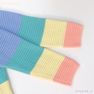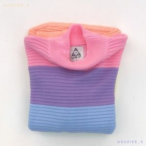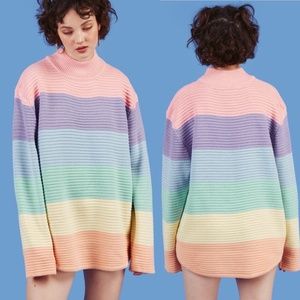 UNIF Frost Pastel Rainbow Striped Oversized Ribbed Mockneck Sweater XS