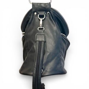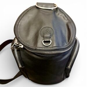 Purchased secondhand in excellent condition and I haven’t used it since purchasing it few years ago. PU outer shell with double zipper on the front. It has two side pockets with zippers each side. Also has a pocket inside the main compartment of the backpack. Also has cool details like the bag has d-ring silver hardwares to give it that hard edge.