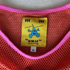 UNIF Orange and Pink Mesh Baby Tee | Size XS