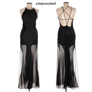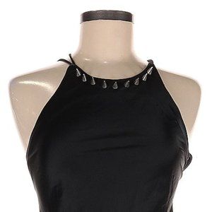 Old school UNIF from back in the day when they sold on Dolls Kill and were way more hardcore goth. INSANE maxi dress with spikes at the collar, a pentagram strappy back, and a statement gathered chiffon skirt. I measured about 14" pit to pit, 14" across the waist, and 18" across the hips with the garment lying flat and unstretched. About 55" shoulder to hem. The back part where the straps attach to the skirt is elasticized so it will stretch out some. Super hard to find! Excellent preowned condition with only minor signs of wear. NOTE: there are a few tiny spots on the back waist that are slightly faded but this is not visible unless you are really close up (see last photos). Feel free to ask any questions. Smoke free home but we do have kitties. BIN38