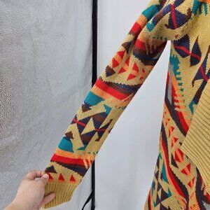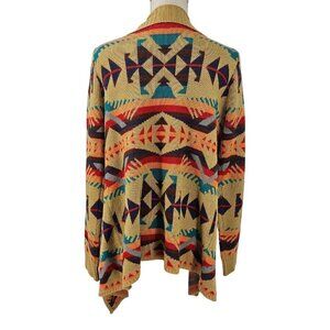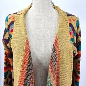 UNIF Southwestern Aztec Tribal Print Cardigan Sweater Multicolor Draped Open Front Geometric Relaxed Fit Knit Long Sleeve Lightweight Women's