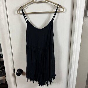 UNIF Stray Sleeveless Romper in black. Vneck with adjustable straps