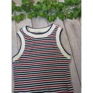 UNIF Women's Blue Red White Striped Ribbed Tank Cropped Cotton Baby Size XS