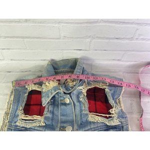 Up for grabs is a preowned UNIF Women's Small Denim Jean Button Up Front Vest Distressed Destroyed Buffalo Plaid Insert Patches. Will come EXACTLY as shown! There are heavy cosmetic flaws on the collar noted in photos! SOLD AS IS! Please do not bid if you are not comfortable with the flaws! Measurements Laying flat are included in photos, PLEASE compare them to your own for proper fit! Please refer to all photos. Ask any questions prior to purchasing. Thanks!