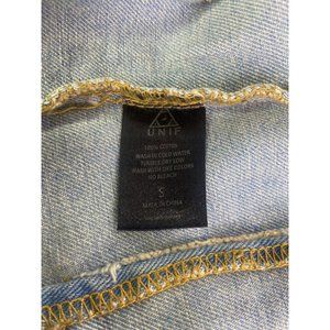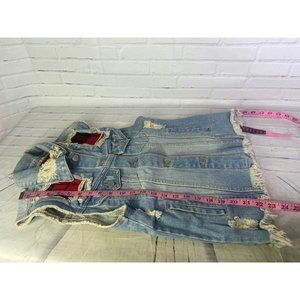 UNIF Womens Small Denim Jean Button Up Front Vest Distressed Destroyed Patches