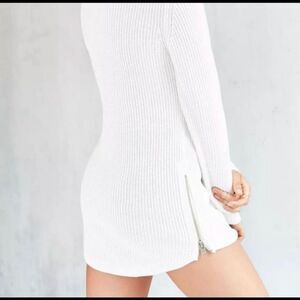 UNIF X Urban Outfitters White Waffle Knit Tunic Zipper Sweater