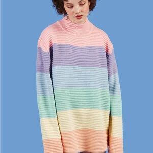 UNIF frost sweater pastel rainbow mock neck sweater XS