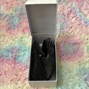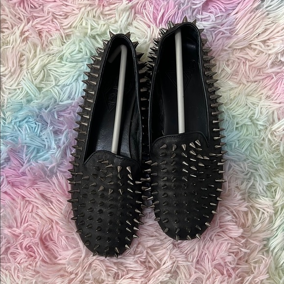 Bold black loafers with silver spikes. Perfect for a daring look.