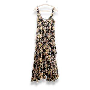 UNIF rare floral flounce tiered boho goth maxi dress women's size S