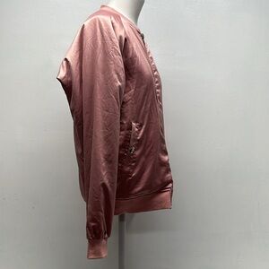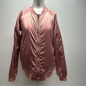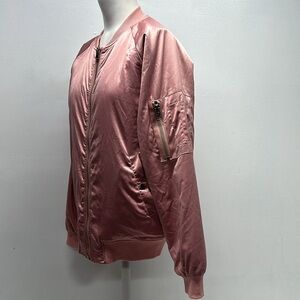 UNIF x UO Bomber Jacket Coat Satin Padded Pockets Full Zip Pink Size Medium