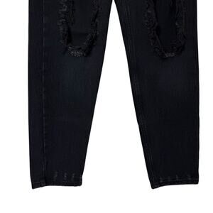 Unif X Urban Outfitters Twerk Jeans in Black. Premium 5-pocket high-waisted jean from edgy LA label, UNIF with seriously ripped + shredded knees and allover distressing. Sits at the natural waist with a tapered, cropped leg and a zip fly.