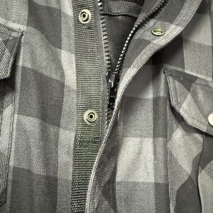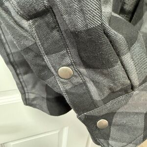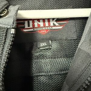 The UNIK Motorcycle jacket is a stylish and functional piece designed for motorcycle enthusiasts. Made with a cotton outer shell and lined with polyester insulation, this jacket offers comfort and protection during rides. The jacket features armored panels for added safety, concealed carry pockets for added convenience, and a zip and button closure for easy on and off. In a sleek black and grey color, this 3XL jacket is perfect for casual occasions and is sure to make a statement on the road. Gently worn only a few times.