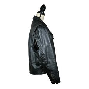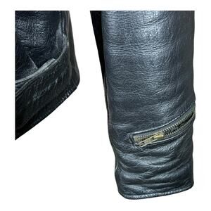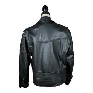 UNIK Premium Leather Motorcycle Biker Jacket in a size 46. Has a front zipper closure. Removable zip out liner. Numerous inside and outside pockets. Zippers at wrists. Very heavy duty. Measures approximately 22 1/2” armpit to armpit and 25 1/2” in length. 100% leather. In great condition.