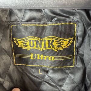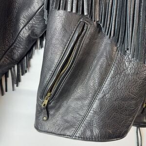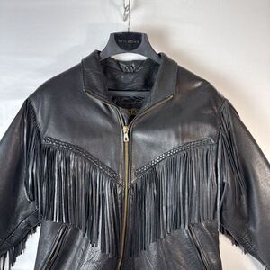UNIK Women's Ultra Black Leather Fringe Biker Jacket L with Zip Out Liner 1980's