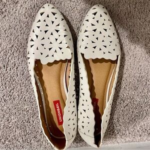 UNIONBAY Women's Ballet Winner Scalloped Flats- White, Size 9.5, Summer/Spring