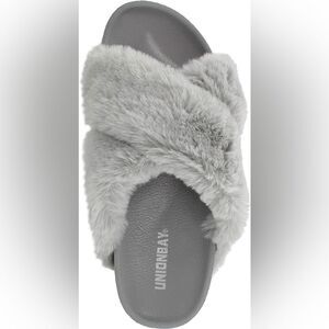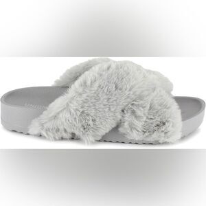 UNIONBAY Women's Luxe Faux Fur Slipper Slides Sandals Grey Size 8 NWT Cozy Soft