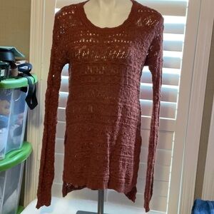 Stylish crew neck sweater. Intricate knit design. Perfect for layering.