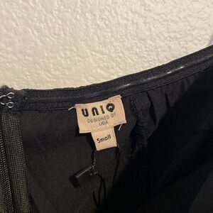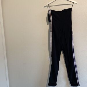 UNIQ Dressy Silky Soft Black Jumpsuit White Pinstripes Small NWT