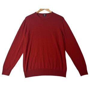 UNIQLO 100% Wool Maroon Crewneck Sweater Holiday Preppy Minimalist Gilmore Girls