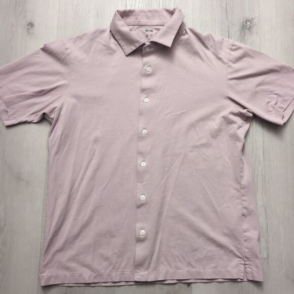 UNIQLO AIRism Shirt Mens size Medium pink Short Sleeve Button Shirt