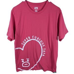 UNIQLO BT21 TATA Super Curious Red Graphic T-Shirt Mens Size M Casual Cotton Tee