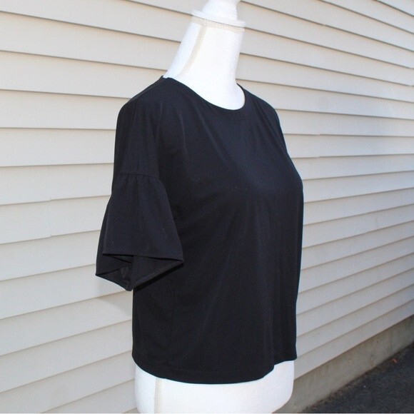 UNIQLO Black Top/ Blouse with Short Ruffle Flutter Sleeves