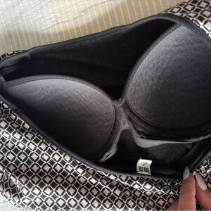 This elegant black and white herringbone patterned dress is perfect for any occasion. Its classic design offers a timeless look that is both stylish and versatile, and it includes built in padding so no bra needed! Super comfortable and stretchy material.