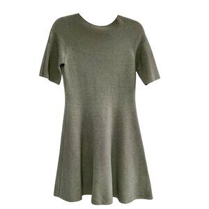 UNIQLO Fit & Flare Pull-On Gray Striped Cotton Dress Short Sleeve Stretchy Sz M