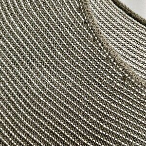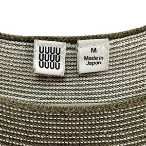 This is a comfy and chic, stretchy, fit & flare midi dress from UNIQLO, in a light gray and white horizontal-striped fabric. Understated, neutral, and minimalist, this is a versatile basic that can be the base for many outfits. Soft and super-comfortable, this dress has a rounded neckline, a rounded hem and modern short sleeves with a bit of extra length. All edges are finished with solid color piping. Pull this over your head and go! Great for your capsule wardrobe!