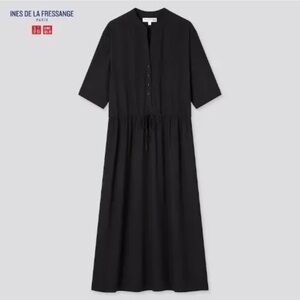 UNIQLO Ines De La Fressange Paris Black Long Dress Minimalist Relaxed Fit XS