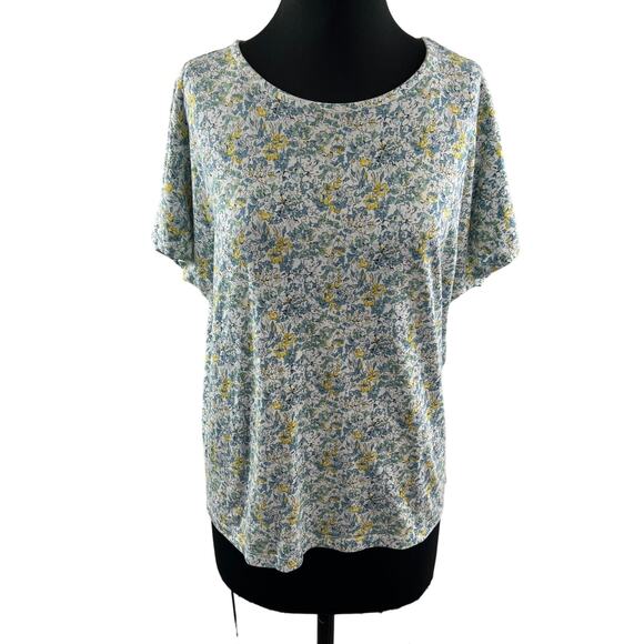 UNIQLO Liberty London Green T-Shirt Floral Print Cotton Round Neck Size L Large