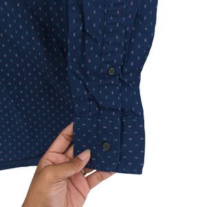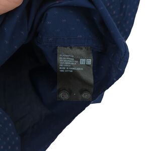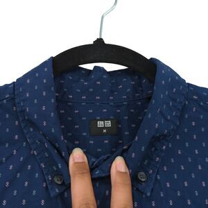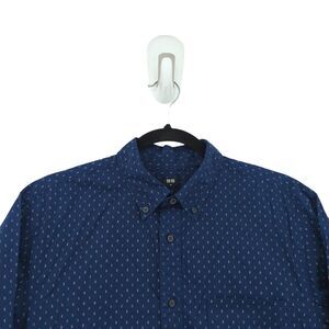 Details: UNIQLO Men M Shirt Navy Blue Fine Cotton Broad Print Button Collared Long Sleeve