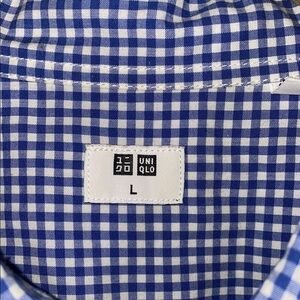 UNIQLO Men's Blue Checkered Shirt Plaid Casual Button Down Collard Size Large