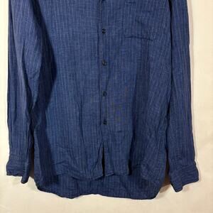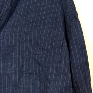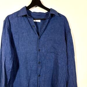 UNIQLO Pinstripe Linen Button Down Shirt Navy Blue Men's XL Collared