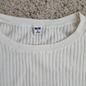 UNIQLO Ribbed Crew Neck Half Sleeved Ribbed Wool Top Ivory Size XL