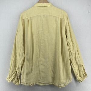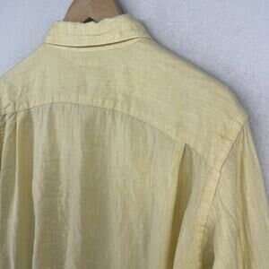 UNIQLO Shirt Mens L 100% Premium Linen Lightweight Button Up Long Sleeve Yellow
