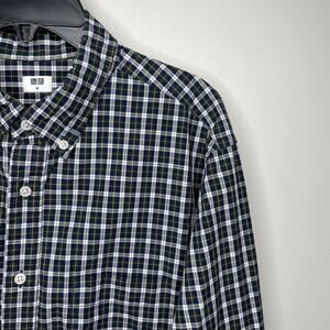 UNIQLO Shirt Mens Medium M Green Tartan Plaid Button Down Cotton Long Sleeve