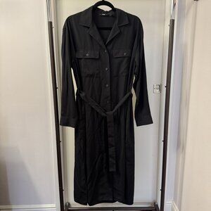 UNIQLO UV Protection Long-Sleeve Black Belted Shirt Dress - size L