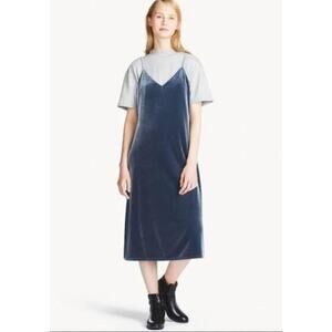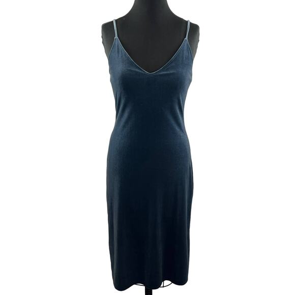 UNIQLO Velour Velvet Blue Slip Camisole Midi Dress Spaghetti Strap V-Neck S