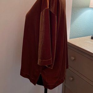 EUC - UNIQLO rust-colored velvety shirt. Flowy and loose fitting. The sleeves fall to about the elbow.