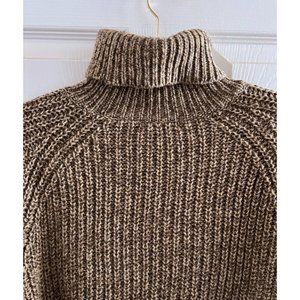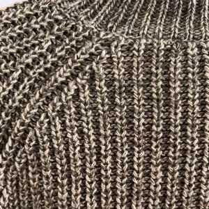 Uniqlo U Low Gauge Turtleneck. Color is called "beige" but the yarn is really a melange of taupe and pale yellow, with the overall effect being taupe that is very faintly olive. The close-up shot of the knit is a pretty good color representation.